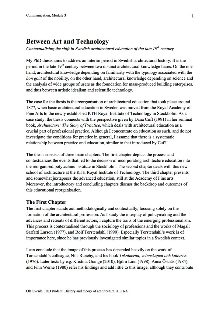 Gabrielsson, Catharina, and Hélène Frichot. “Transversal Writing Course Pm.” KTH Architecture and the Built Environment 2015.
